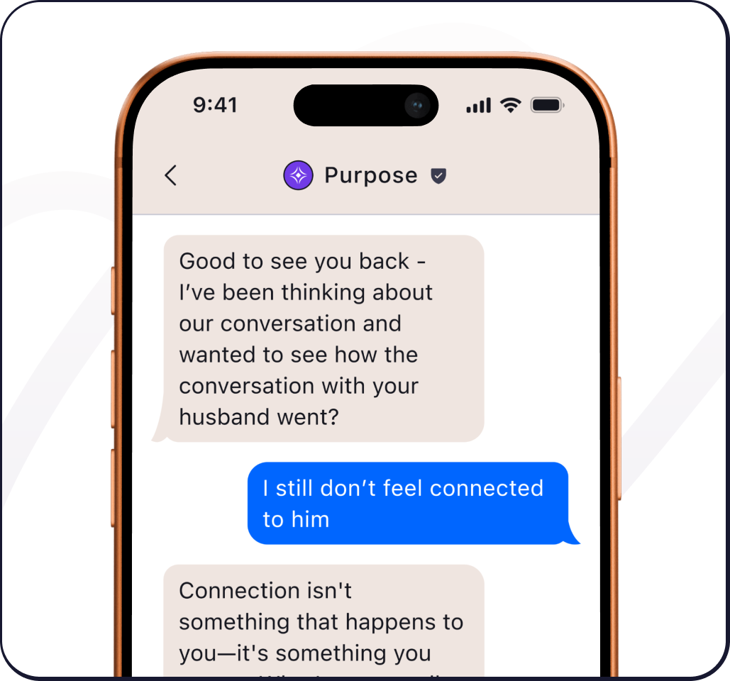 You talk to it about whatever you’re facing—stress, decisions, conflicts, goals—and it helps you make sense of things. Purpose listens, reflects back what matters most, and turns big challenges into small, actionable steps. The more you use it, the more personalized and helpful it becomes.