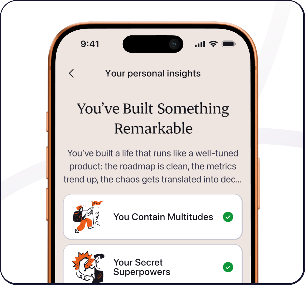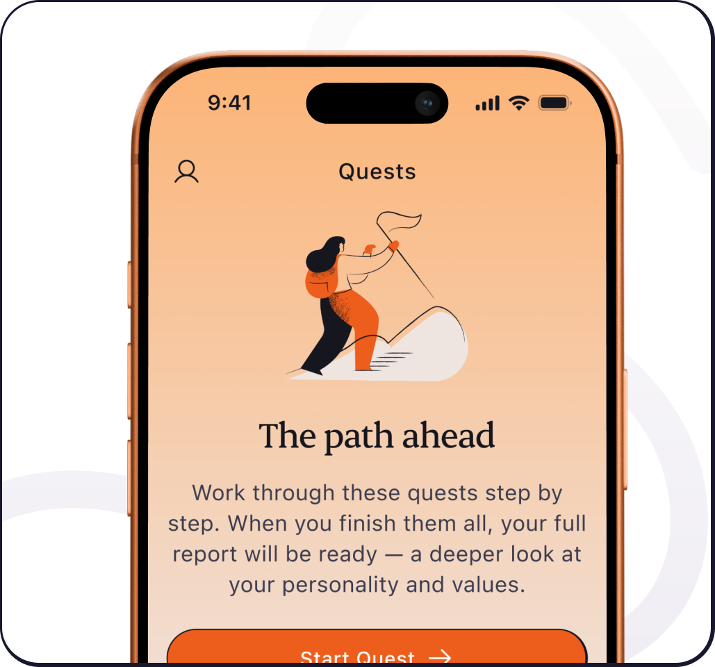 - Guided Quests that sharpen insights and reveal blind spots